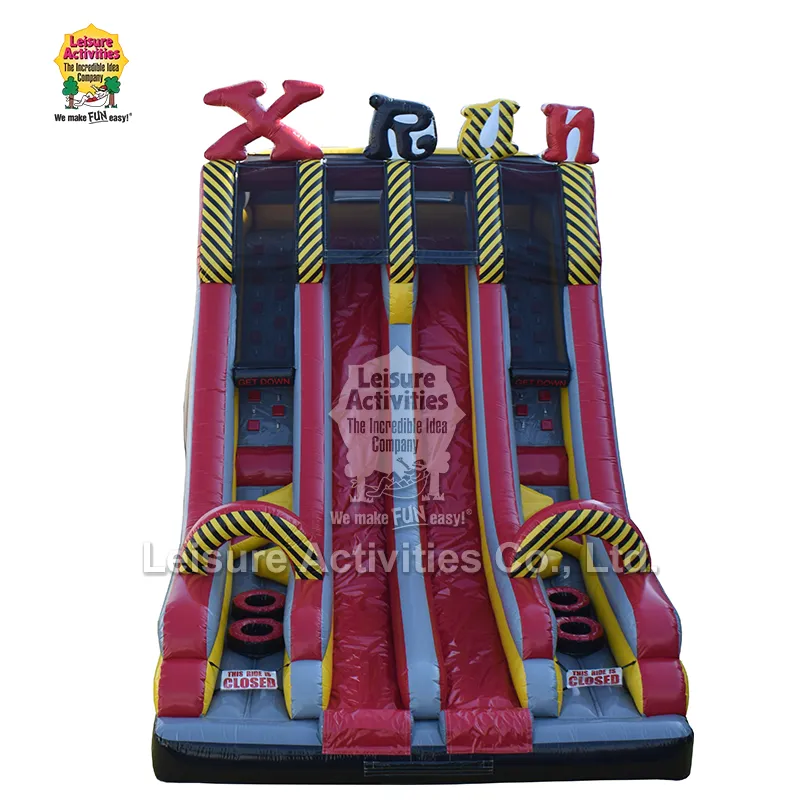 Leisure Activity® является производителем и поставщиком профессиональных надувных горок Xtreme Fun Run с двойной дорожкой. Он имеет конструкцию с двойными параллельными направляющими, сочетающую в себе удовольствие, большую вместимость и долговечность. Он прост в эксплуатации и подходит для всех возрастных групп.