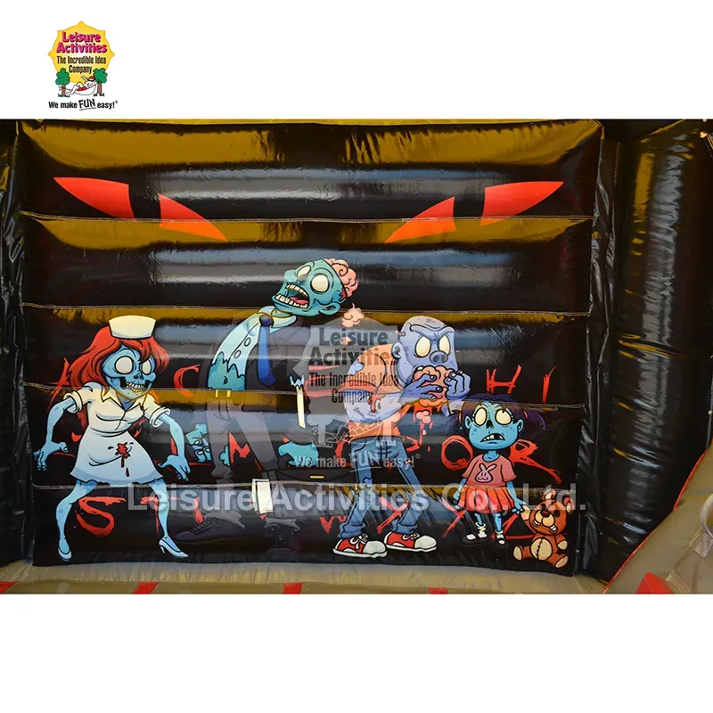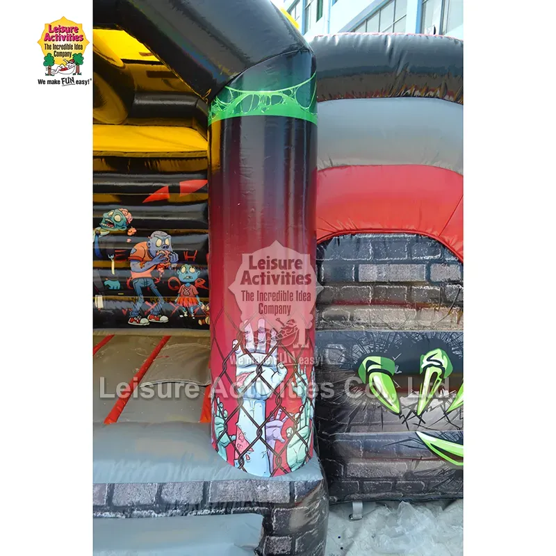 Компания Leisure Activity имеет собственную фабрику и является производителем и поставщиком небольших надувных многопользовательских надувных замков с привидениями и горкой в ​​Китае. Этот продукт имеет смелую цветовую гамму, создающую захватывающую атмосферу. Он очень подходит для вечеринок в честь Хэллоуина, осенних фестивалей, тематических дней рождения и развлечений.