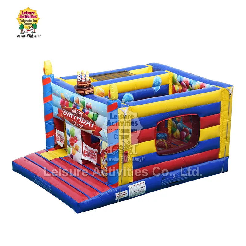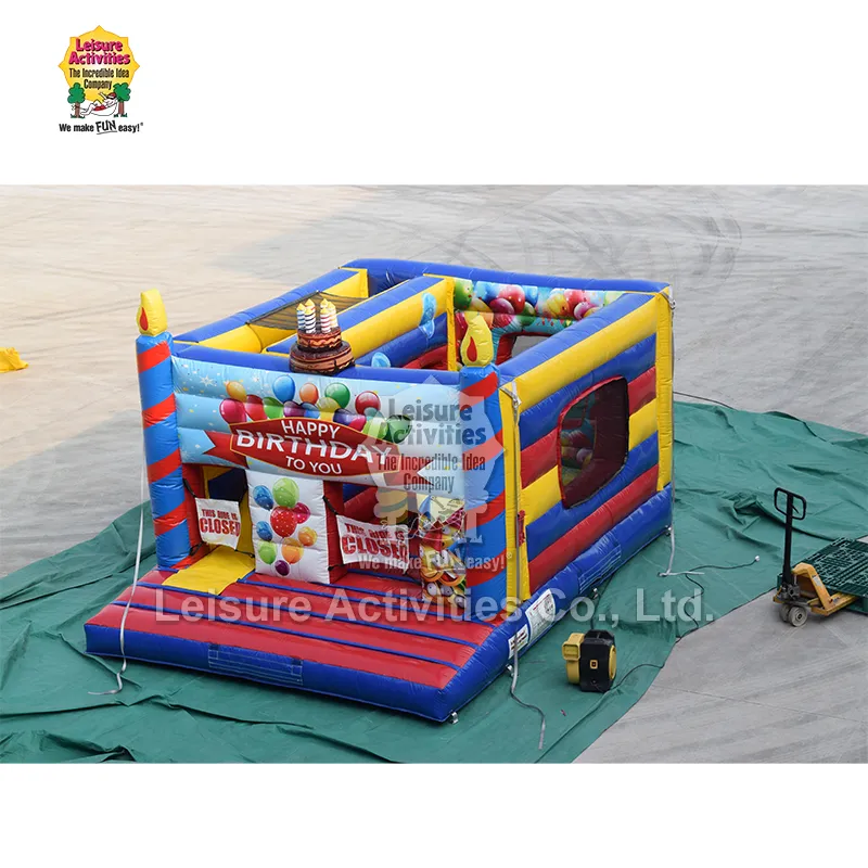 Leisure Activity® — профессиональный производитель и поставщик надувных изделий в Китае с более чем 30-летним опытом работы в надувной индустрии. Стандартные надувные многоцелевые надувные замки Happy Birthday разработаны и произведены нами независимо. Он основан на красочном дизайне темы дня рождения, учитывающем как безопасность, так и веселье, и специально разработан для различных вечеринок по случаю дня рождения и детских мероприятий.
